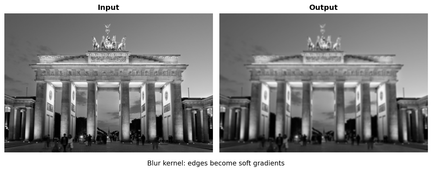 Blur kernel: edges become soft gradients#