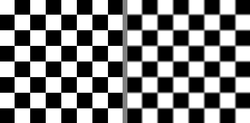 Original checkerboard (left) and blurred result (right)#