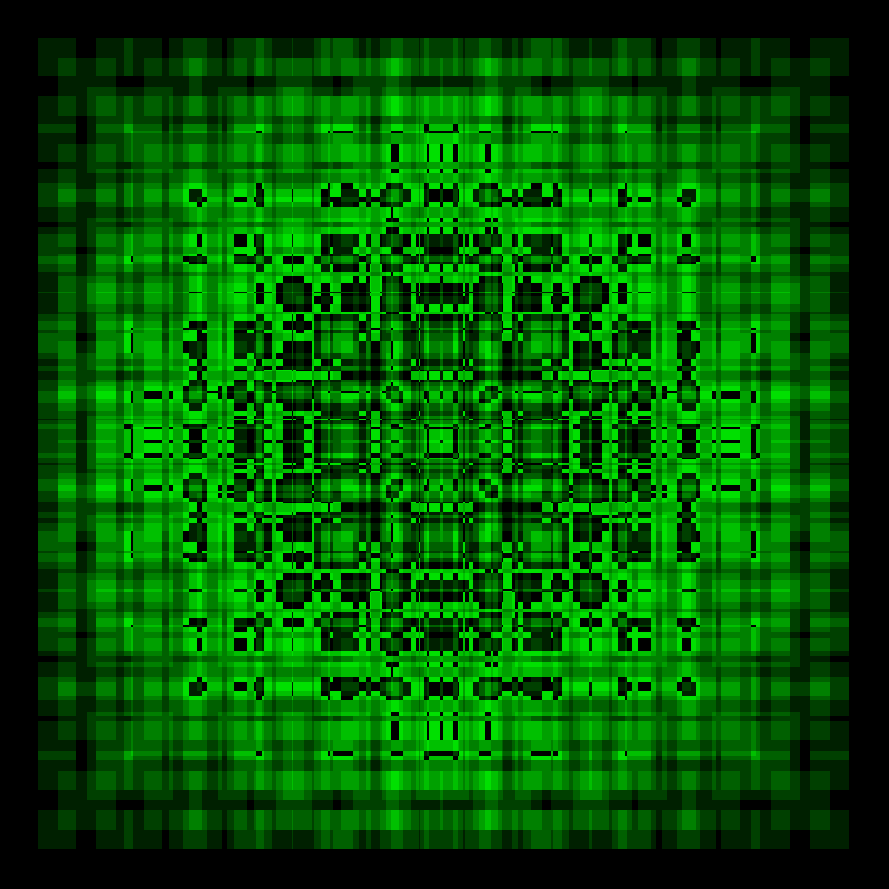 Try COLOR_INCREMENT = 16 for a subtle, dark pattern, and COLOR_INCREMENT = 64 for bright, high-contrast output.