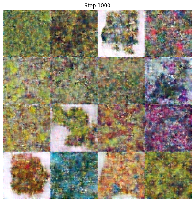 Step 1,000 - Early training (mostly noise with hints of structure)
