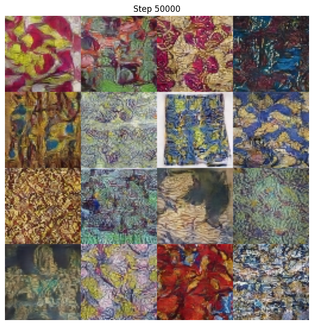 Step 50,000 - Clear fabric patterns (recognizable designs)