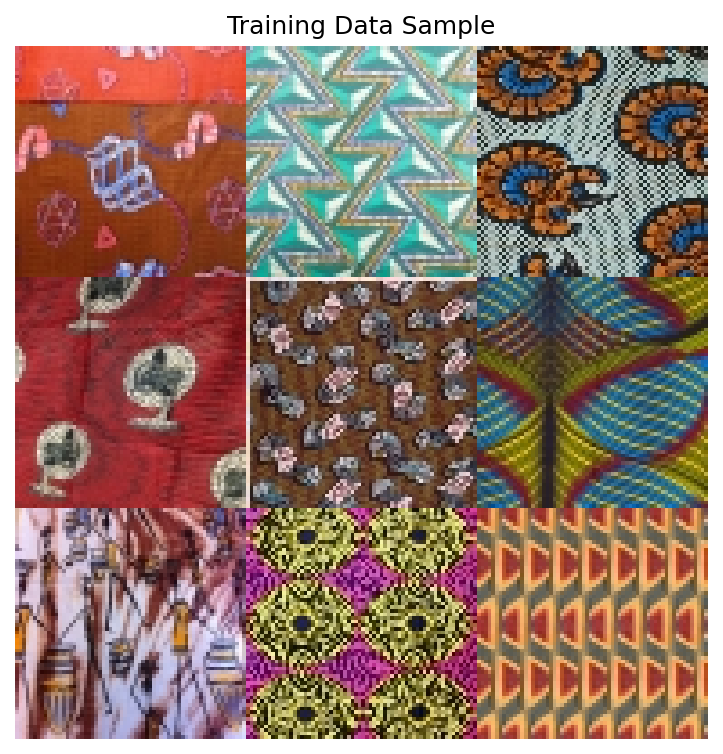 In this exercise, we apply Flow Matching to generate African fabric patterns using the same dataset from Modules 12.1.2 (DCGAN), 12.1.3 (StyleGAN), and 12.3.1 (DDPM). This enables direct comparison of four different generative approaches on identical data.